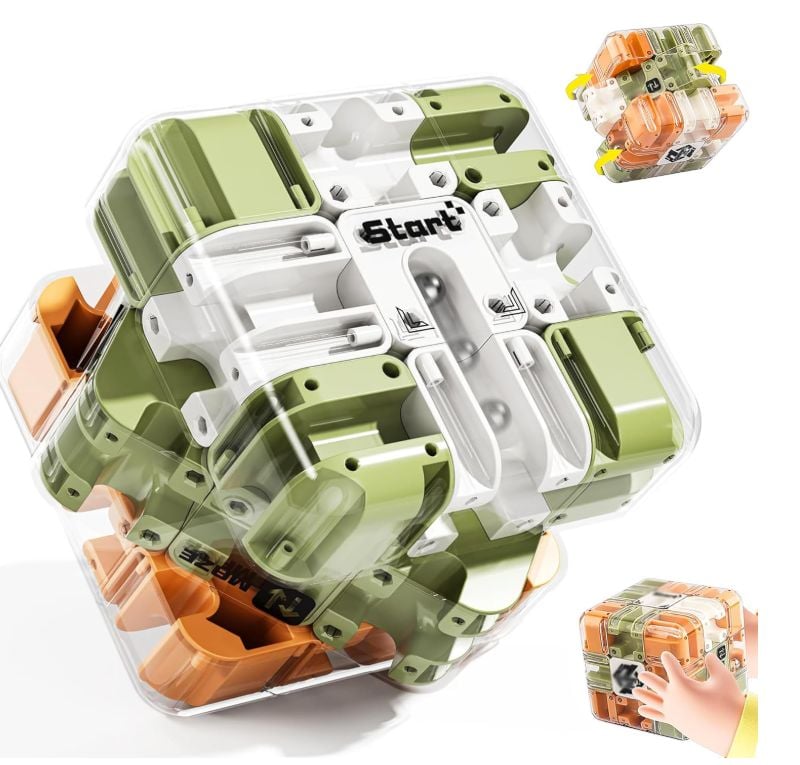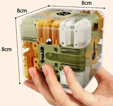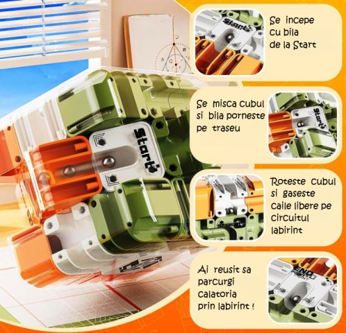 - Dificultate: Prin combinarea labirintului intern cu necesitatea de a roti și a manipula cubul, jucăria oferă un nivel înalt de provocare mentală și fizică.