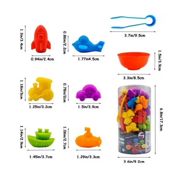 - Numărare și Matematică Timpurie: Piesele pot fi folosite ca obiecte de numărat (manipulatives) pentru a învăța concepte de bază de adunare și scădere.