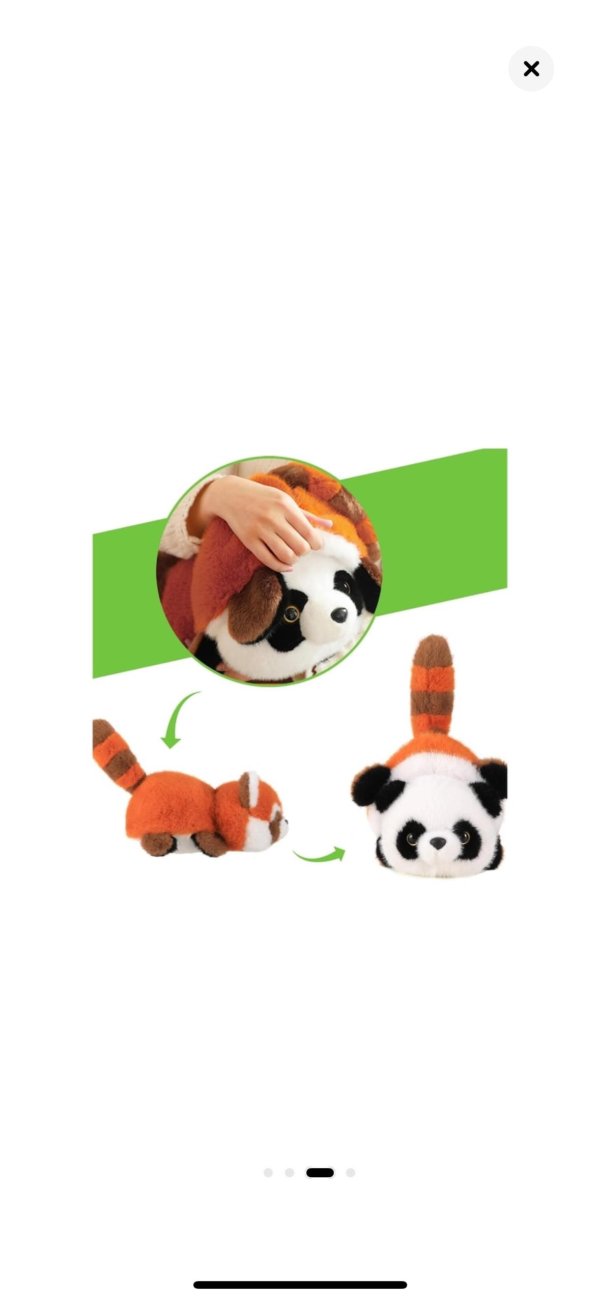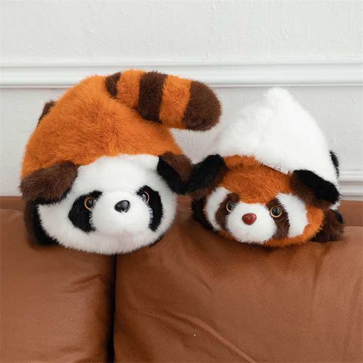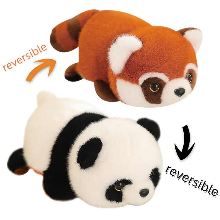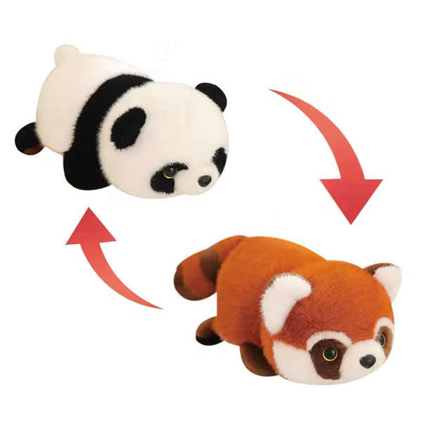 Descoperiți magia transformării cu această adorabilă jucărie de pluș reversibilă, perfectă pentru a aduce bucurie și confort copiilor de toate vârstele! Pe de o parte, veți găsi un simpatic panda roșu, cu blănița sa distinctivă, portocalie-brună și coada pufoasă. Prin simpla răsturnare, jucăria se transformă într-un clasic și îndrăgit panda alb-negru, cu petele sale specifice în jurul ochilor. Realizată dintr-un material plușat, moale și delicat la atingere, această jucărie este ideală pentru îmbrățișat, pentru a deveni un partener de somn sau pur și simplu pentru a decora camera copilului. Designul inteligent și culorile vesele o fac irezistibilă și o alegere excelentă pentru cadouri.