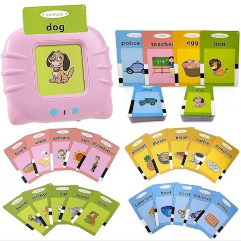 JUCARII EDUCATIVE: Jucarie educativa pentru baieti si fete de 2, 3, 4, 5 ani. Aceasta jucarie educativa pentru terapie logopedica include un citator de carduri si 112 carduri flash cu doua fete care incorporeaza 12 subiecte precum forme, culori, animale,necesitatile zilnice, transporturi, alimente, fructe, legume, costume, natura, personae si locuri de munca.
