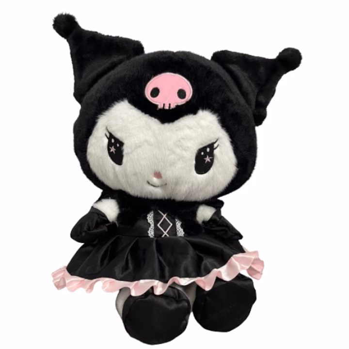 Păpusa tip Kuromi din seria Hello Kitty Sanrio din plus cu rochită si cu o înăltime de 40 cm, este un cadou minunat pentru orice copil. Această păpusă reprezintă personajul fantastic Kuromi din celebra serie Hello Kitty, aducând în casă magia si farmecul acestei lumi îndrăgite.