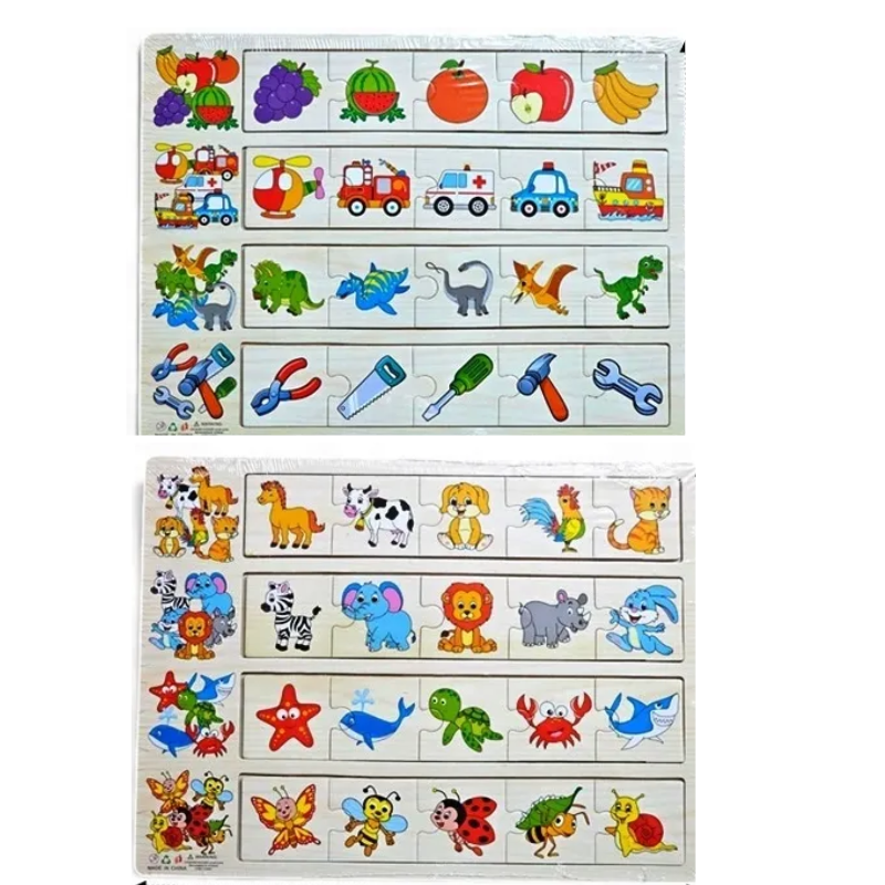 Set 2 puzzle de asociere si clasificare pentru copii, joc educativ din lemn, 3 ani+