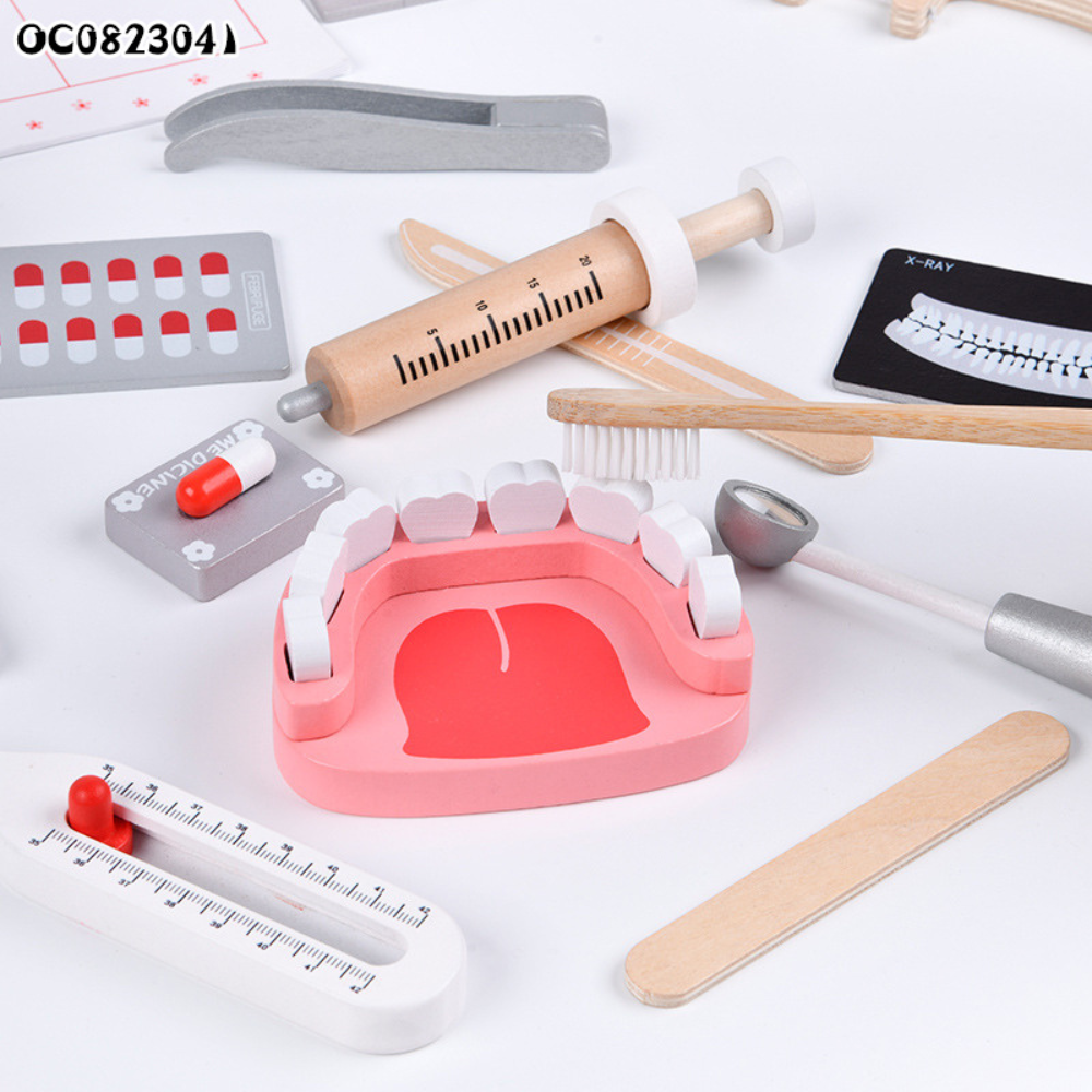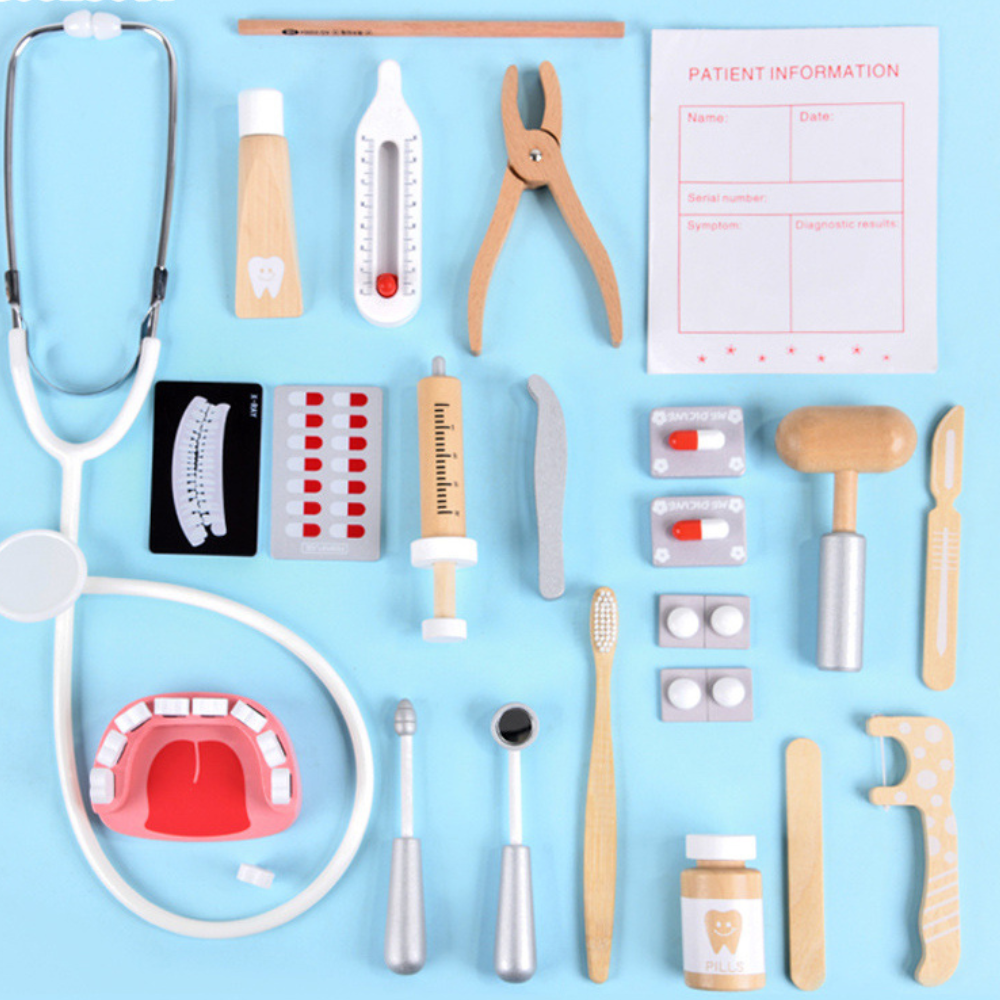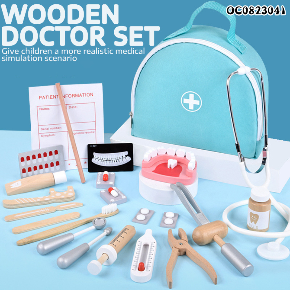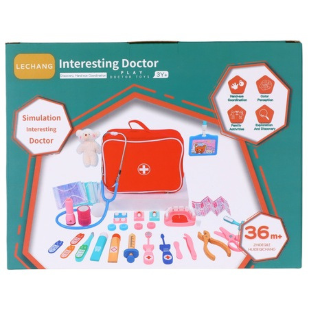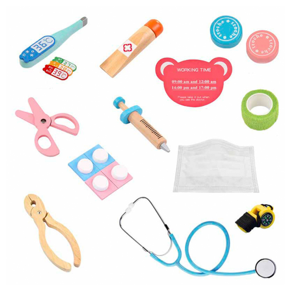 Trusa medicala de jucarie, set din lemn, 20 accesorii, Jucarie Interactiva, kit complet, Interesting Doctor, 3 ani