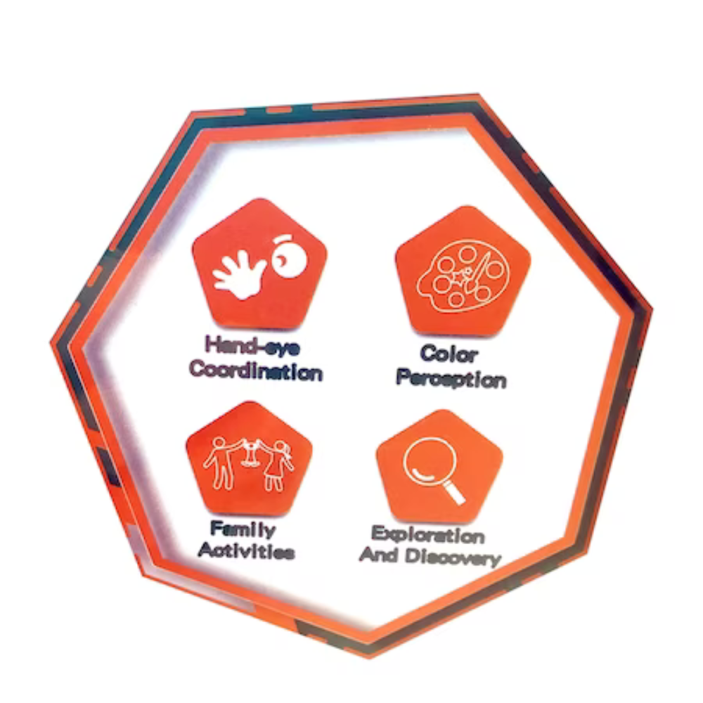 Este conceput pentru a ajuta la stimularea dezvoltarii coordinative si neuronale a inteligentei copiilor, Ii va starni imaginatia si creativitatea si il va ajuta sa descopere noi modalitati de joaca.